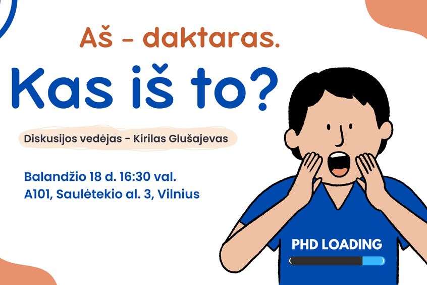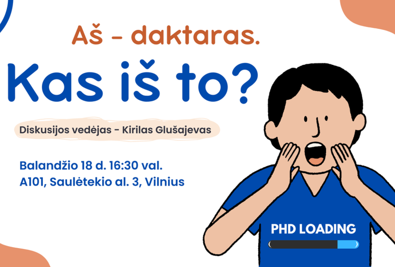Balandžio 18 d. 16:30 val., konferencijų salėje A101 (Saulėtekio al. 3) kviečiame į linksmą diskusiją apie doktorantūrą ir pasirinkimus po jos (akademinėje srityje arba privačiame sektoriuje), sėkmę ir nesėkmę po studijų, daktaro laipsnio privalumus ir trūkumus.