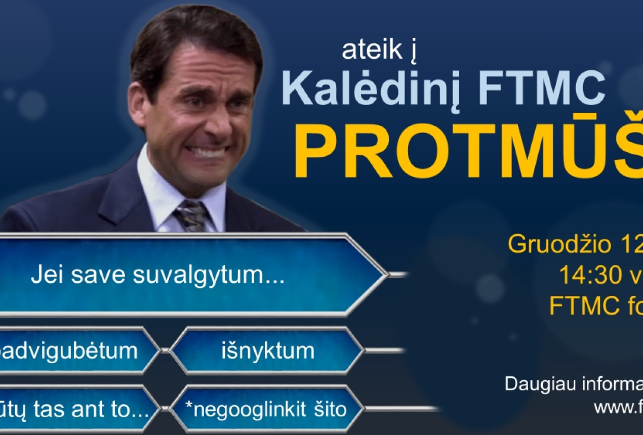 Ir vėl atėjo laikas, kai galite pasišpilkuoti su savo kolegomis kuris per šiuos metus sukaupė didesnį žinių bagažą. Kviečiame į Kalėdinį FTMC protmūšį!