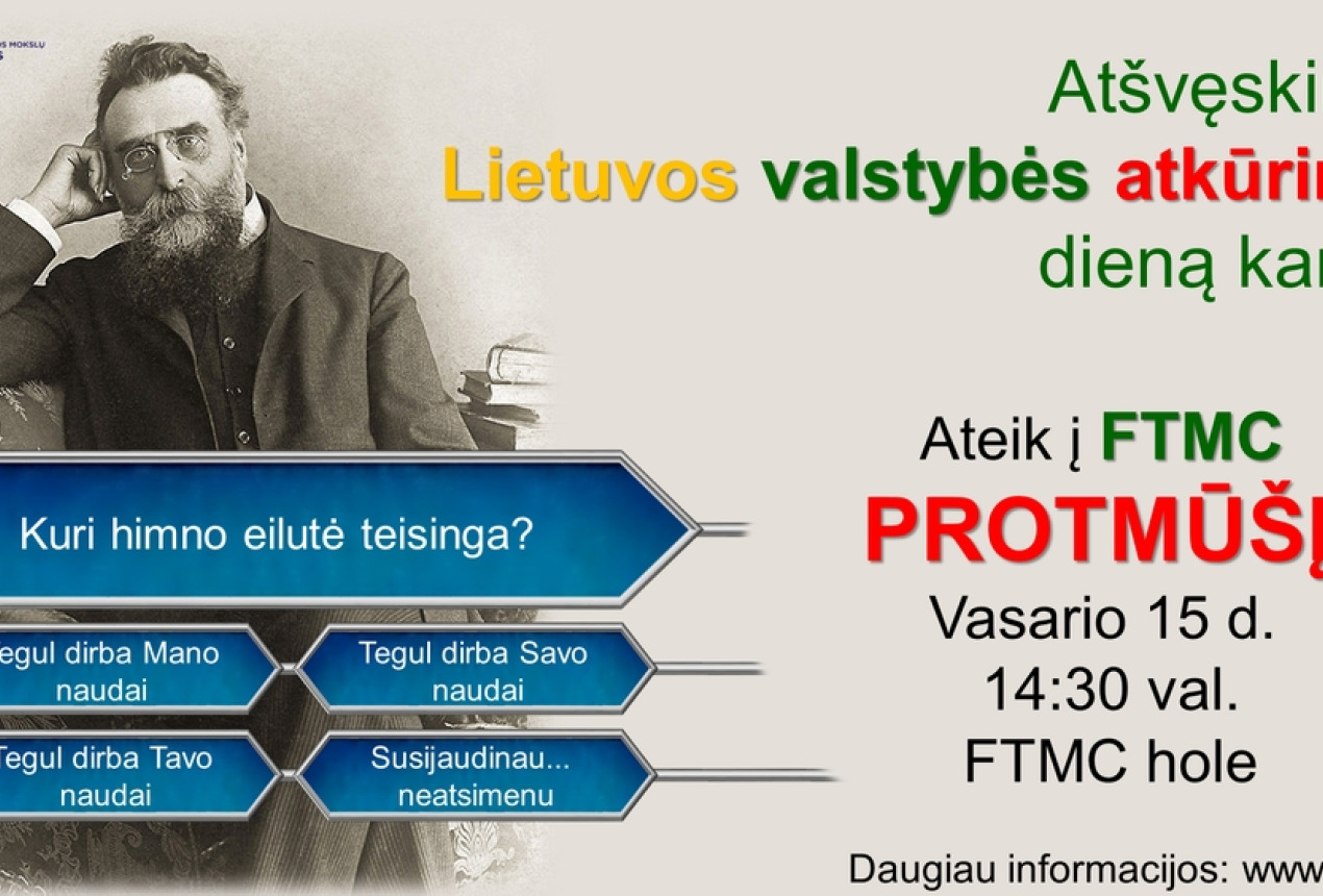 Paminėkime Lietuvos Valstybės atkūrimo dieną kartu! Čiupk savo draugus ir ateik į Vasario 16-osios progai skirtą protmūšį.